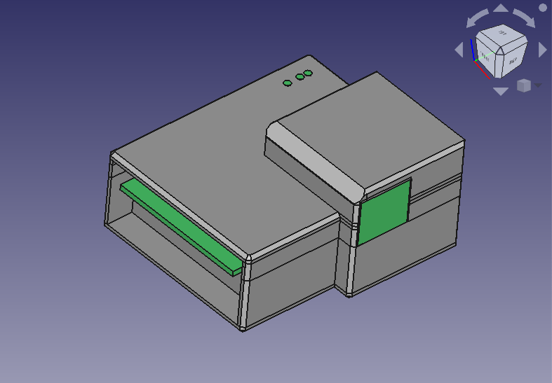 Hotová krabička je zaklapávací, ze tří dílů. V horní části jsou 3 otvory pro LED. Pokud jsou na desce osazeny SMD diody, je možné jako světlovod použít kousek čirého filamentu o průměru 1.75mm.
